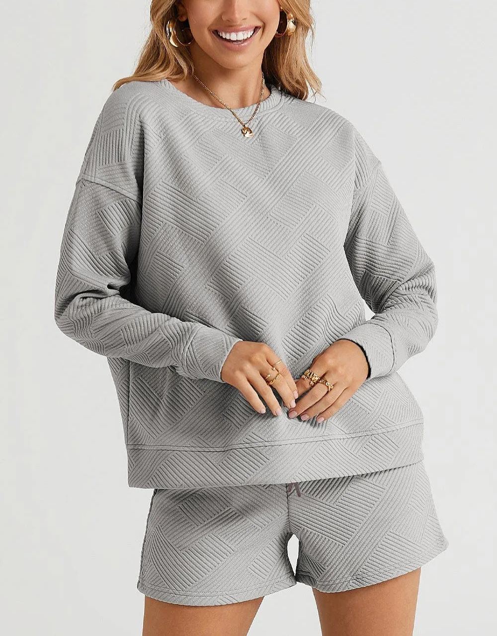 Women's Texture Long Sleeve Top and Drawstring Shorts Set