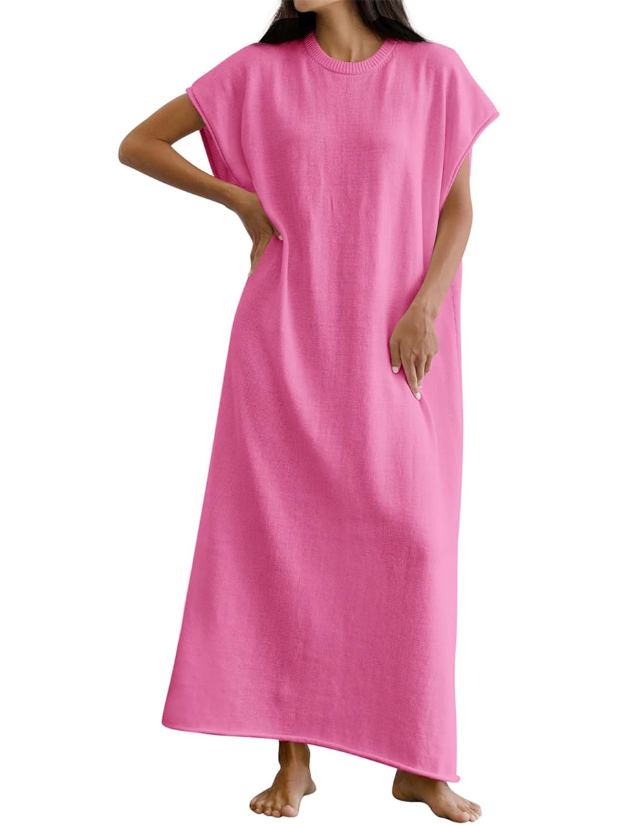 HOT SALE Casual Crewneck Short Sleeve Loose Fit Knit Maxi Dress