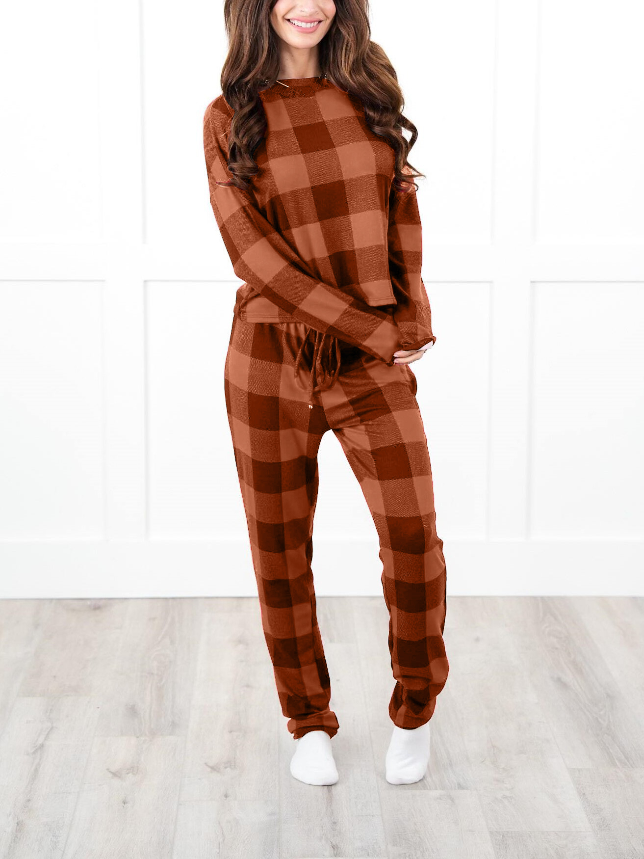 Step into sweet dreams with this cozy buffalo plaid pajama set! The classic checks bring all those warm cabin vibes right to your bedtime routine. With a comfy round neck and relaxed fit, it's like wearing a warm hug to sleep. Perfect for holiday movie marathons, Christmas morning excitement, or just lounging around with a cup of cocoa.