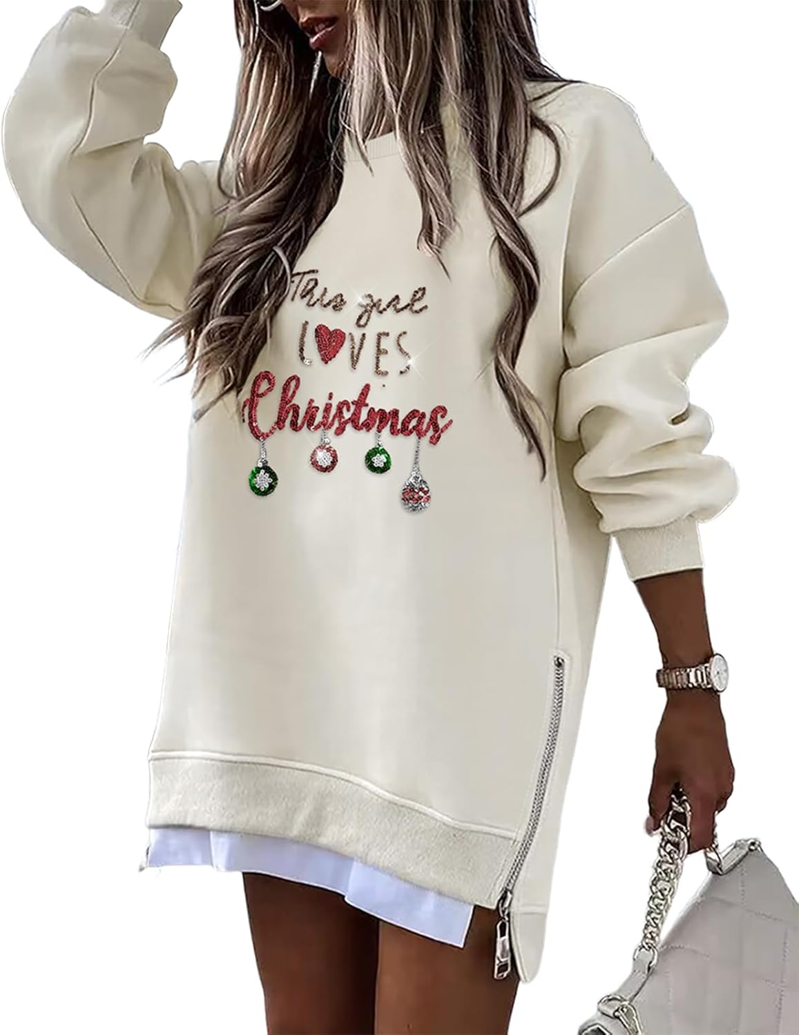 Get festive with the Christmas Sequin Sweatshirt! This long sleeve top showcases a playful sequin Christmas element design,side slit zipper and a relaxed fit for ultimate comfort. Perfect for any festive occasion. Ho-ho-hurry and add it to your wardrobe!