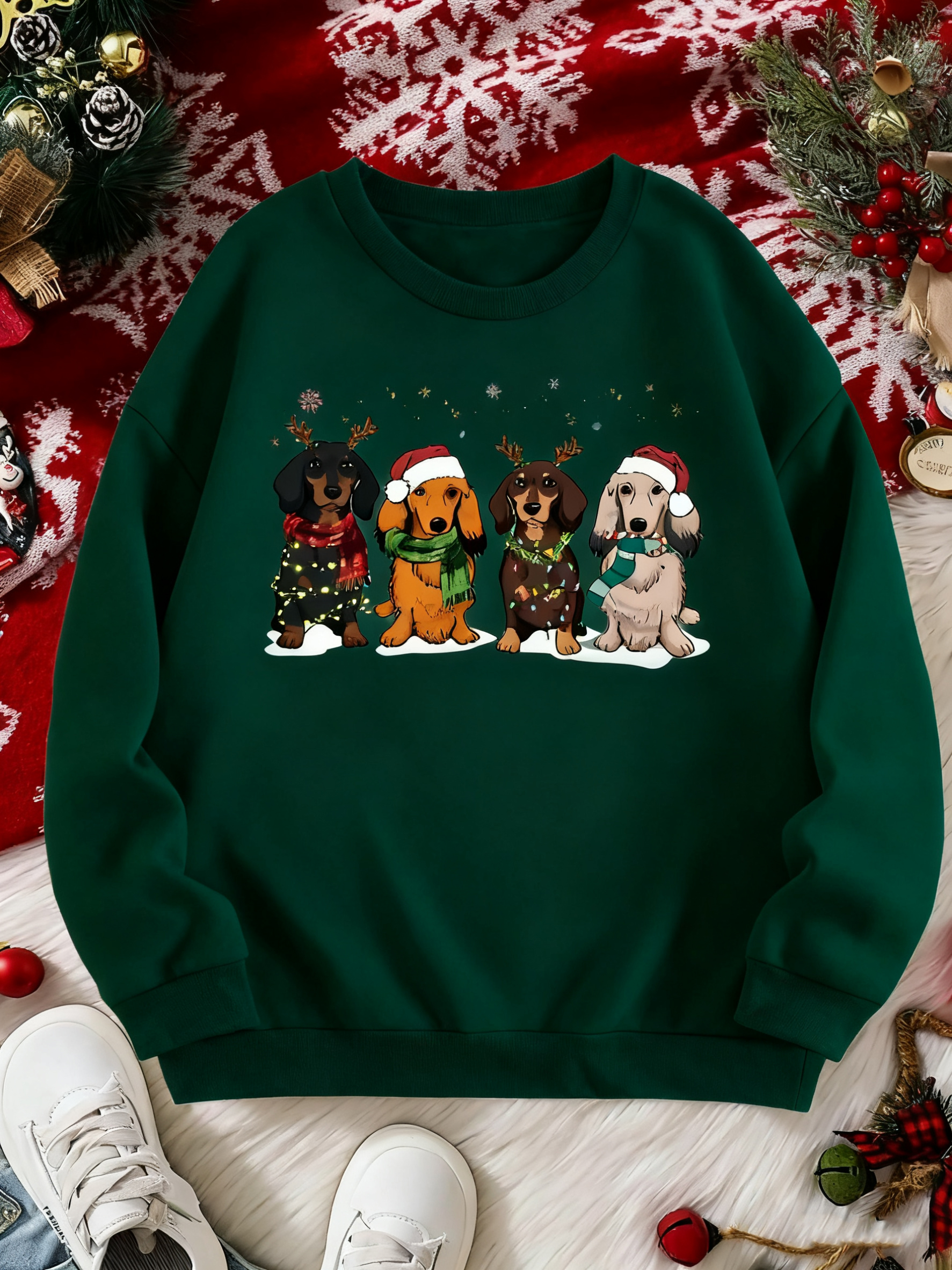 🎄 Wrap yourself in dachshund love and Christmas cheer with this one-of-a-kind sweatshirt — a must-have for every dog lover who wants to deck the halls (and their wardrobe) with festive, pup-inspired charm! Because nothing says “holiday spirit” quite like four stylish pups ready to celebrate! 🎅🐾