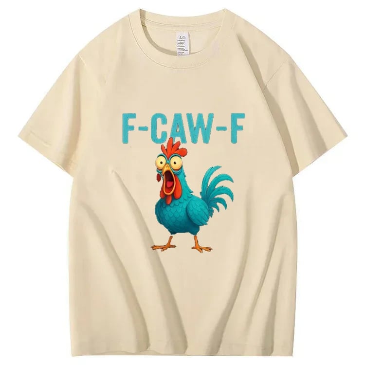 This shirt highlights a wide-eyed blue rooster in full cry, paired with the quirky phrase “F-Caw-F.” Roosters have long been symbols of vigilance and awakening, reminding communities across history to rise against challenges while poking fun at life’s daily absurdities.