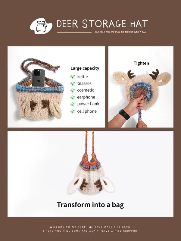 A fun surprise awaits — simply pull the drawstrings to transform the hat into a fluffy pouch bag! Store small items like your phone, keys, or gloves while on the go. It’s not just a hat, it’s a clever winter accessory that makes your outfit both functional and fun!
