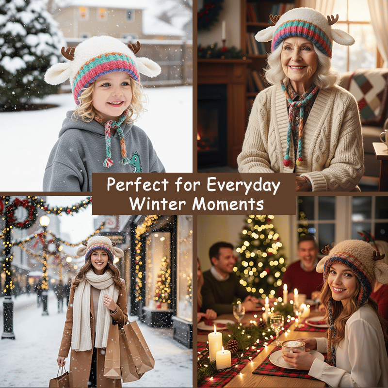 This cozy antler hat isn’t only for Christmas Day — it’s perfect all season long. Wear it to family dinners, shopping trips, cozy weekends, or holiday parties. It’s a simple way to stay warm and adorable from December through February.