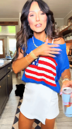 Show your American spirit in this flag-inspired knit top. Crafted from soft, breathable fabric, it offers all-day comfort with a relaxed fit and short sleeves. This versatile piece pairs effortlessly with your everyday outfits for an easy, stylish look.