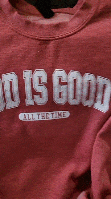 ✨Celebrate the best time of the year with this sweatshirt, full of retro charm and Christian warmth. Featuring a rich red base with classic white distressed 'God Is Good All The Time' lettering, it's the perfect stylish and comfortable way to celebrate.