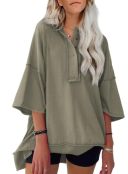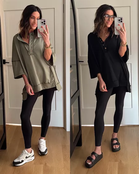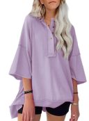 I’m all about colors + comfort🌞 Cute irregular hem.exposed seaming.Oversized t shirts for women,classic henley collar design,seems inside out,gives a comfortable and chic look.