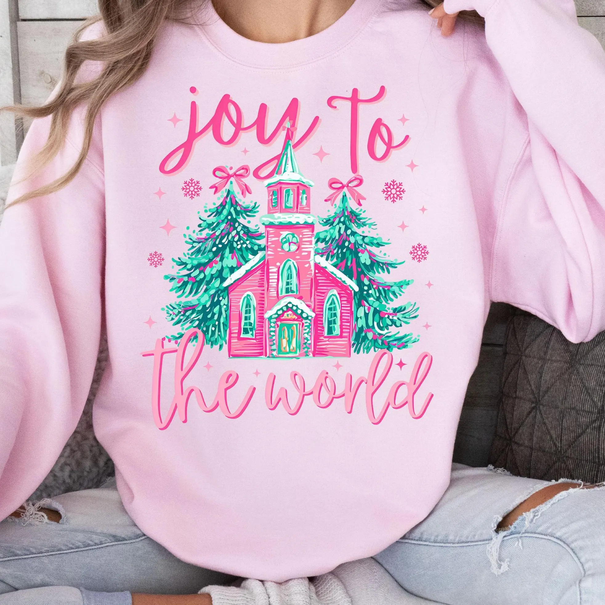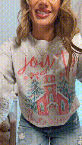 - Bold Script Lettering: The phrase “Joy to the World” is printed in a flowing, cheerful script in bright pink, adding warmth and personality to the design.