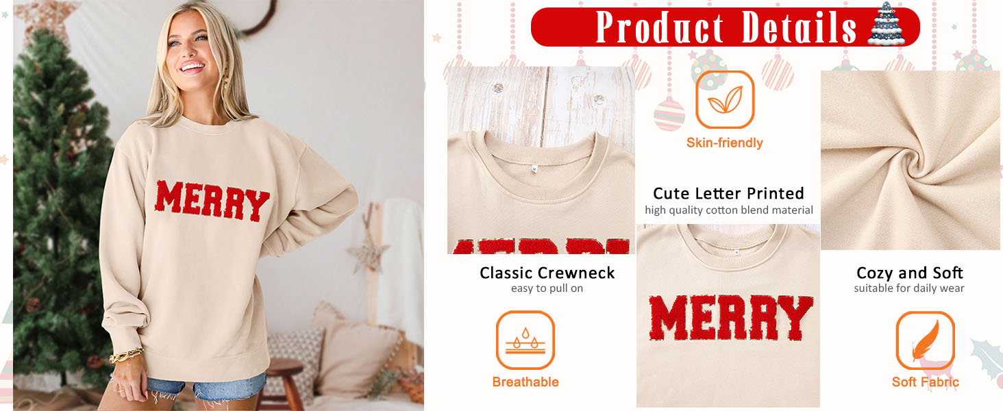 Crafted from soft, breathable fabric, this relaxed-fit sweatshirt offers all-day comfort. Its oversized silhouette flatters every body type, ideal for layering over tees or wearing solo as you attend holiday parties, family gatherings, or casual winter outings.