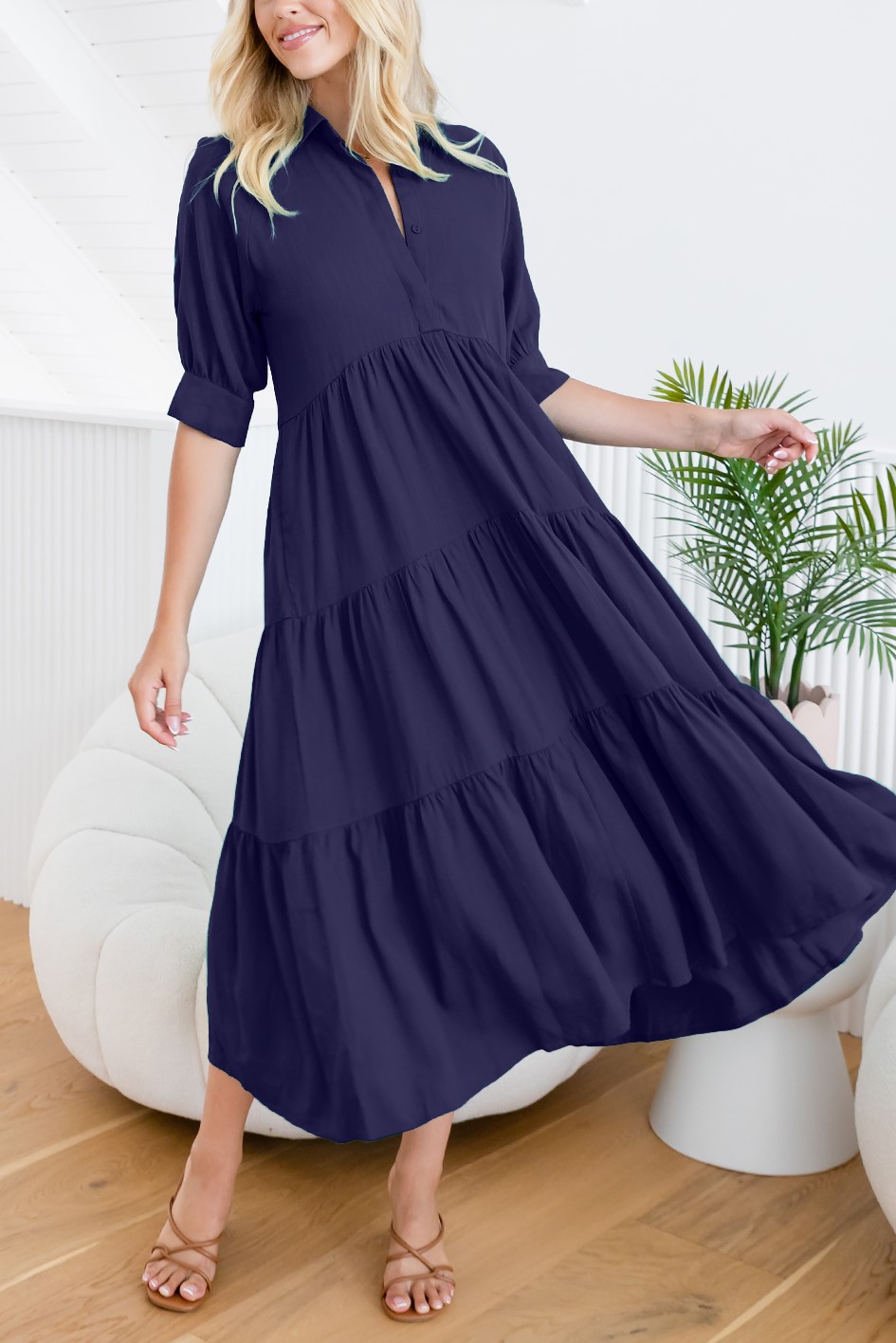 HOT SALE Mid-sleeved Shirt Tiered Maxi Dress