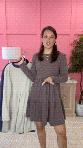 This Raised Rib Long Sleeve Tiered Dress Is Soft and Loose Fit Style Can Keeps You Comfortable All Day while Still Being Dressy!