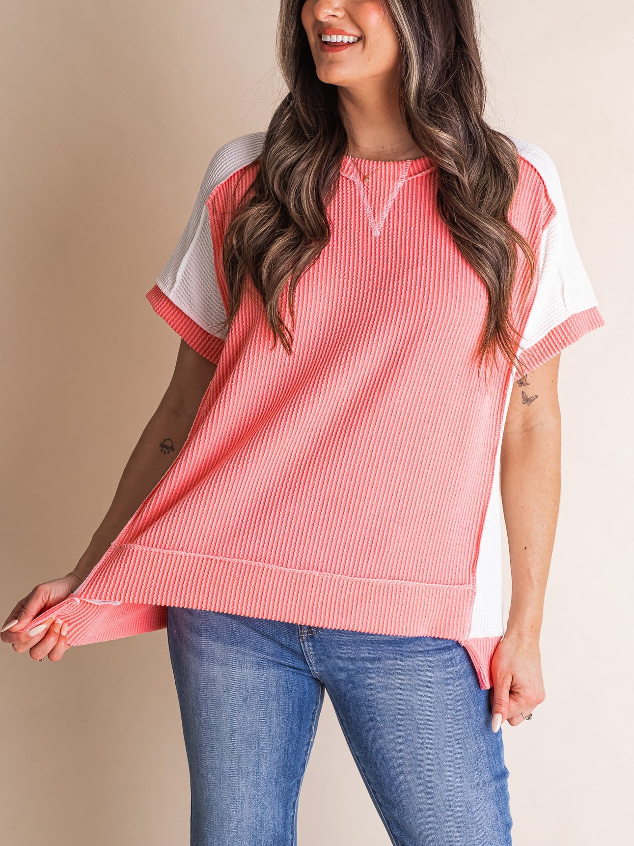 Take your outfit to the next level with our Walk The Line Color Block Top! Plus, the relaxed fit ensures a comfortable and stylish look. Perfect for adding a pop of fun to any outfit!
