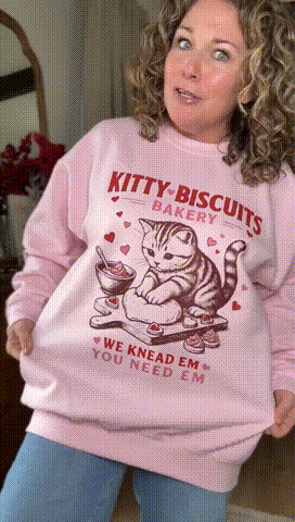 🐱🍪Sweet, cozy, and full of charm — this adorable graphic sweatshirt brings bakery vibes and kitty love together in the cutest way. Featuring a playful kitten kneading dough with the phrase “We Knead ’Em, You Need ’Em”, it’s the perfect mix of humor, warmth, and cozy style.