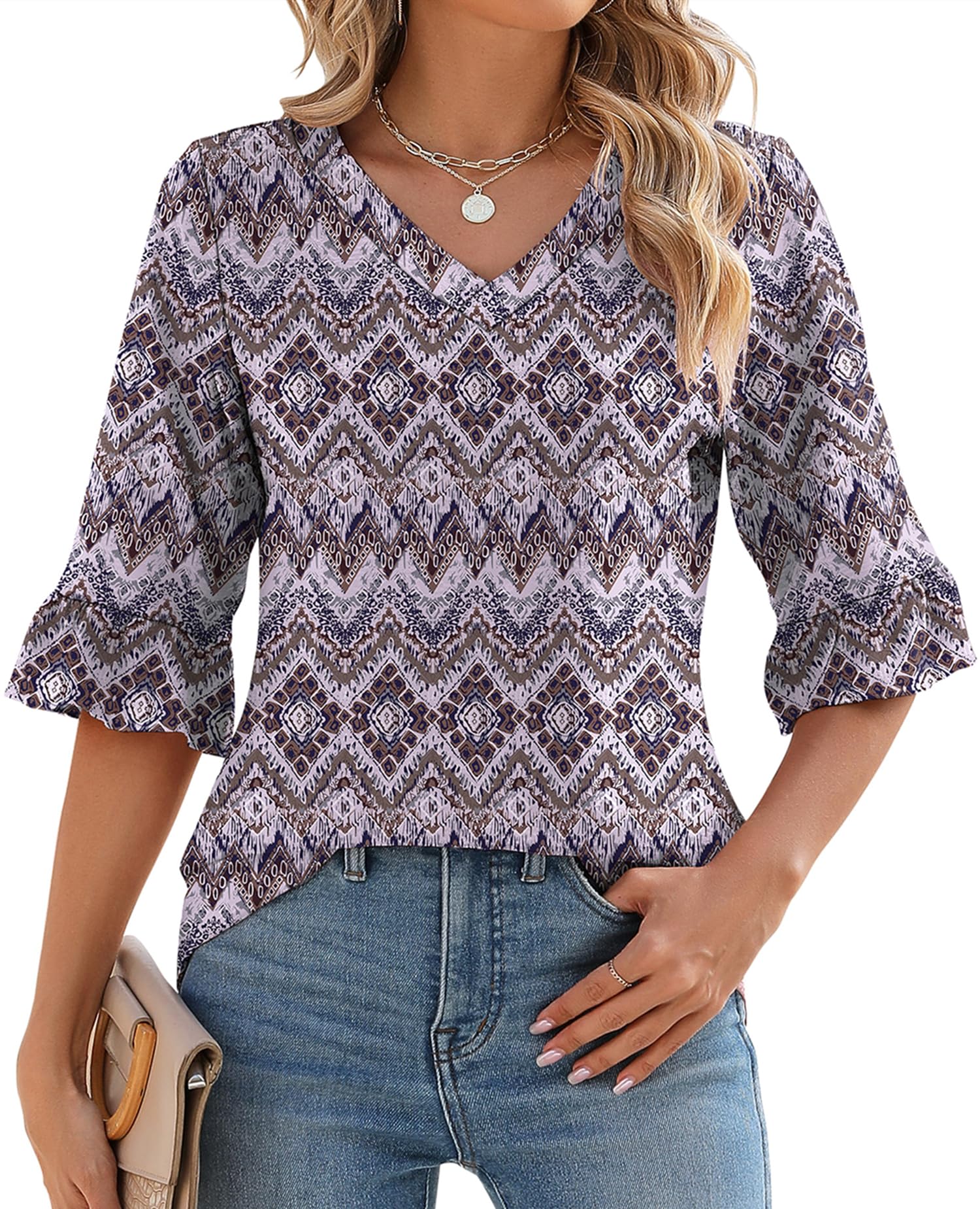 This women's 3/4 sleeve tee is a stylish addition to any wardrobe. The timeless bohemian floral pattern easily elevates any outfit, perfect for casual outings, work or a night out.