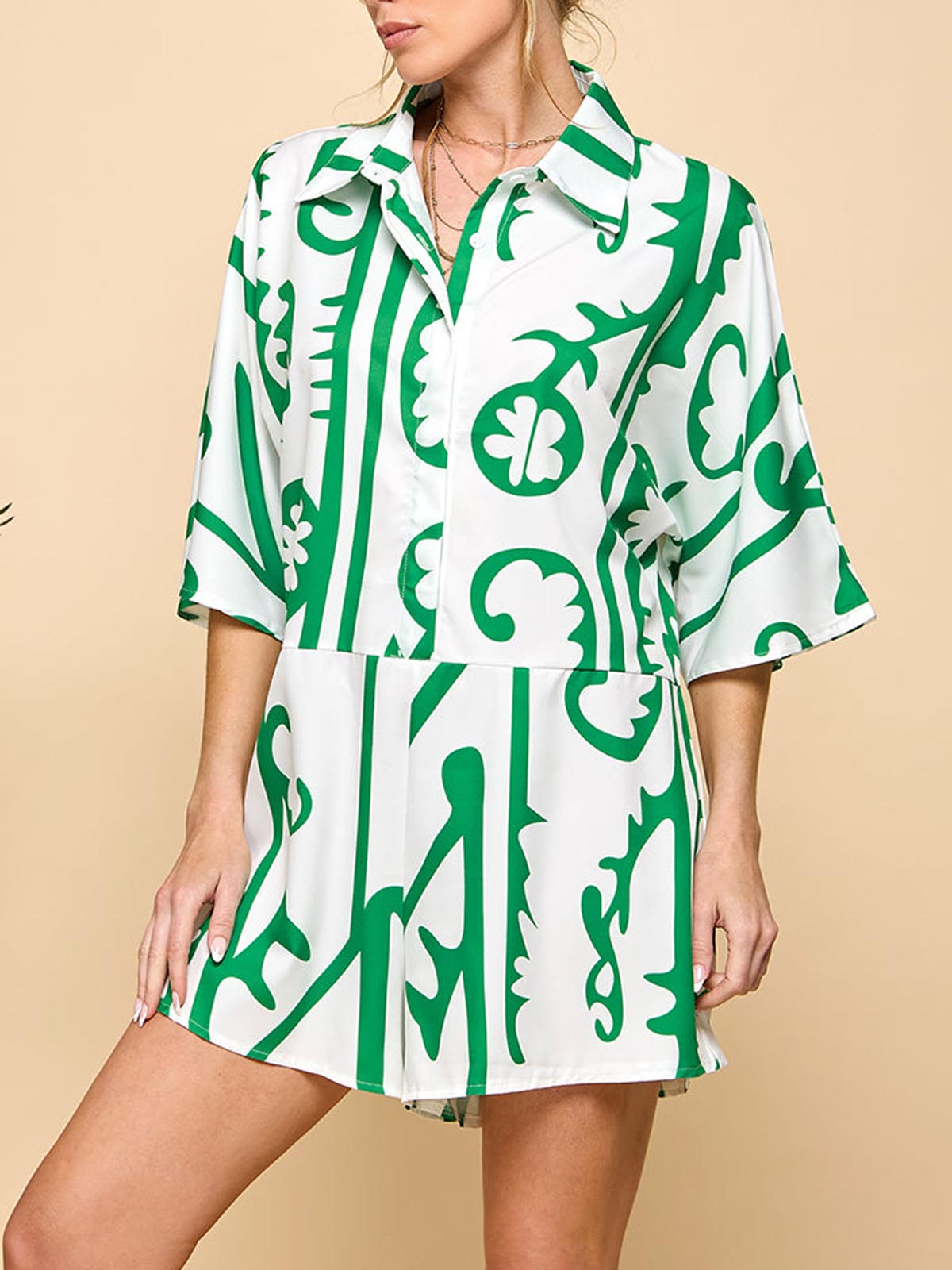Stay comfortable and relaxed in our printed jumpsuit. Featuring a unique printed geometric pattern, a relaxed fit and a mini length, this jumpsuit is sure to make a statement with every step, making you the center of attention wherever you go.