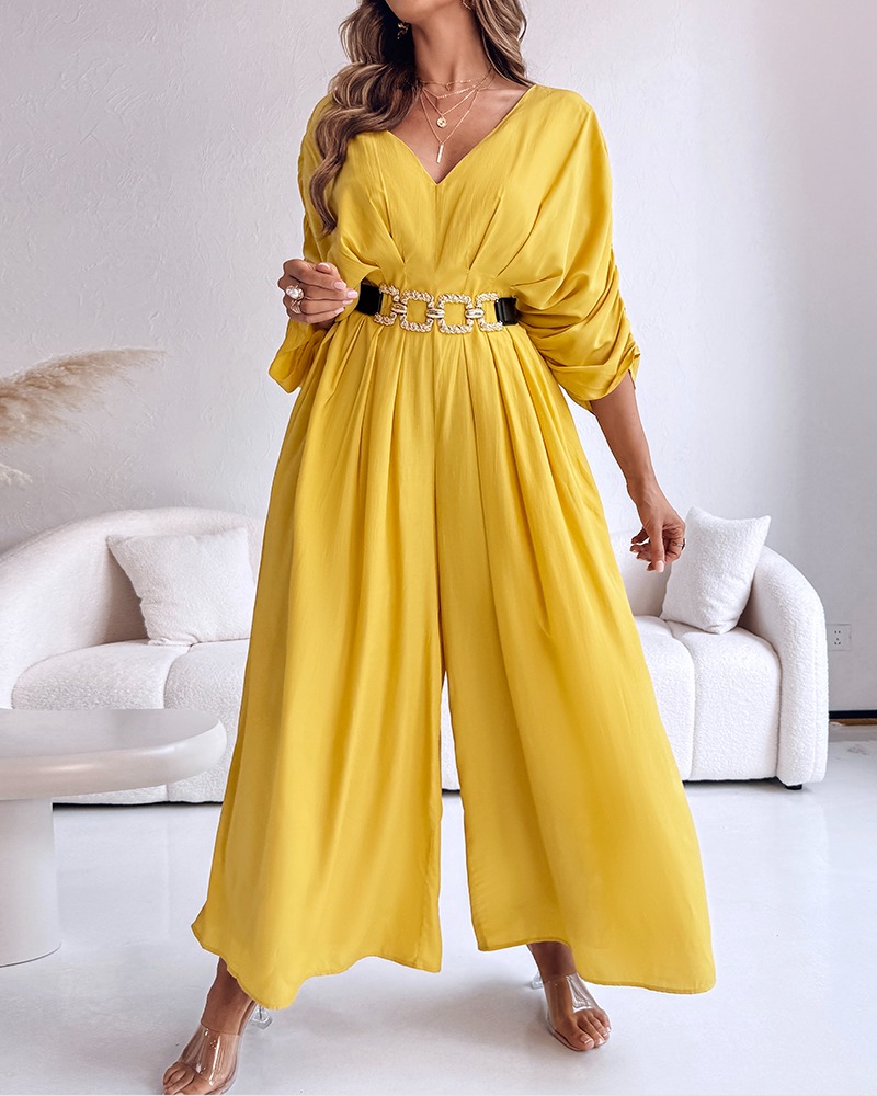 Discover effortless elegance with our ruched jumpsuit. The deep V neck and overall design make this a great choice for any stylish girl.
