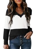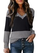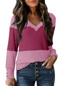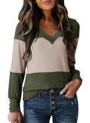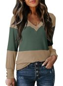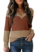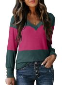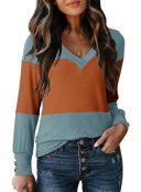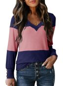 Women's Color Block Long Sleeve V Neck Casual Top (BUY 2 FREE SHIPPING)