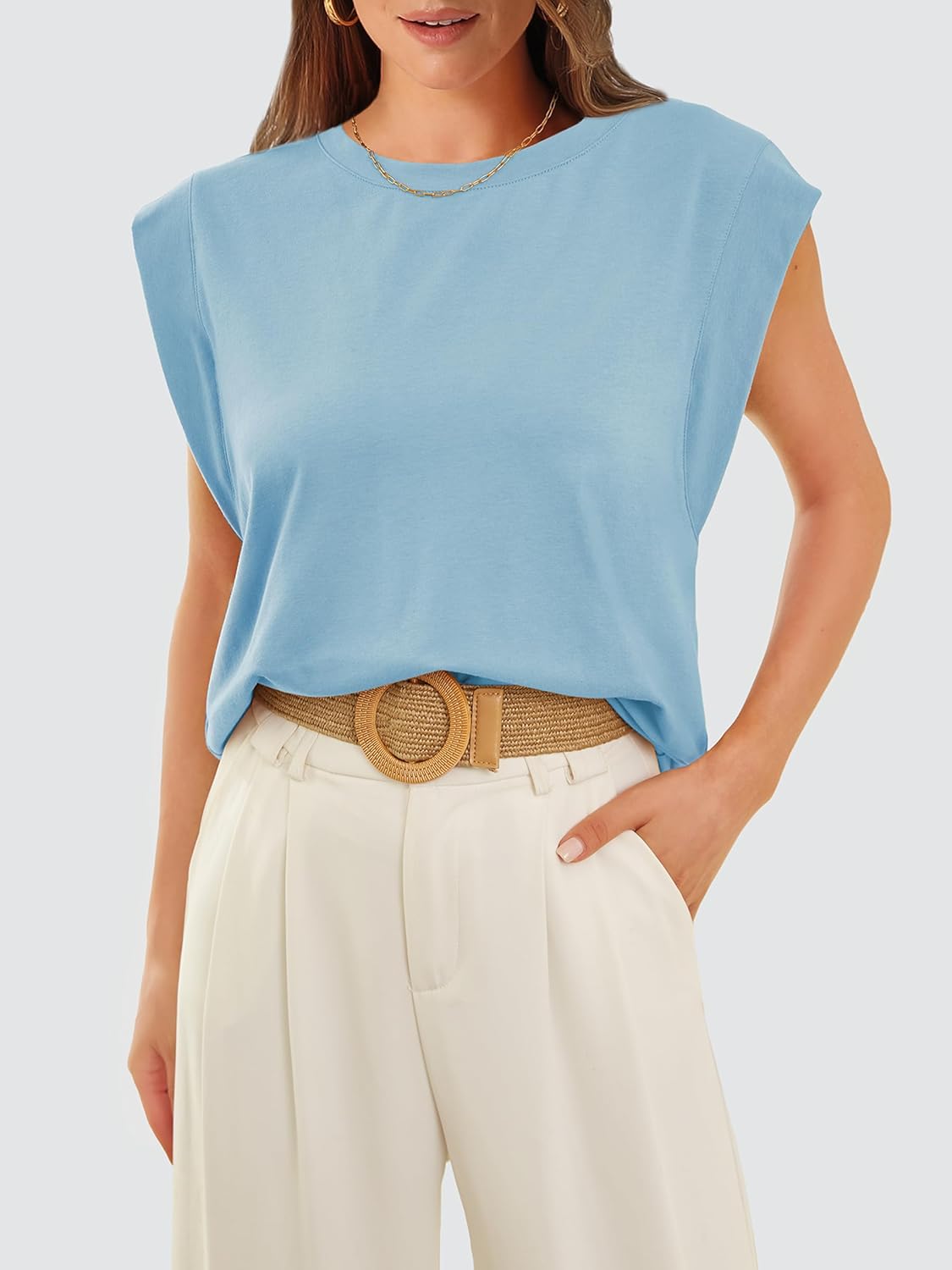 Women's Crewneck Cap Sleeve Casual Tank Basic Tee