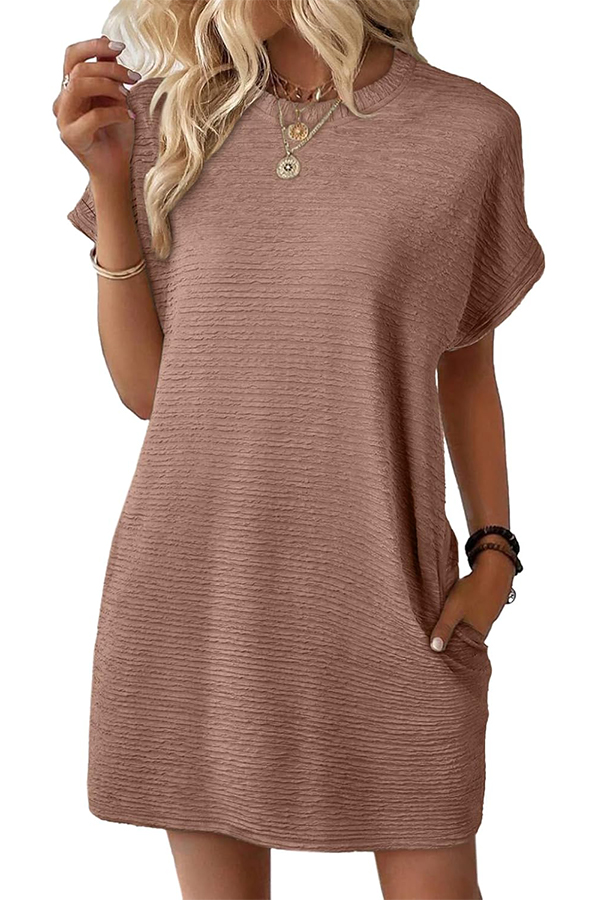 Women's Crewneck Short Sleeve Textured Pocket Mini Dress (BUY 2 FREE SHIPPING)