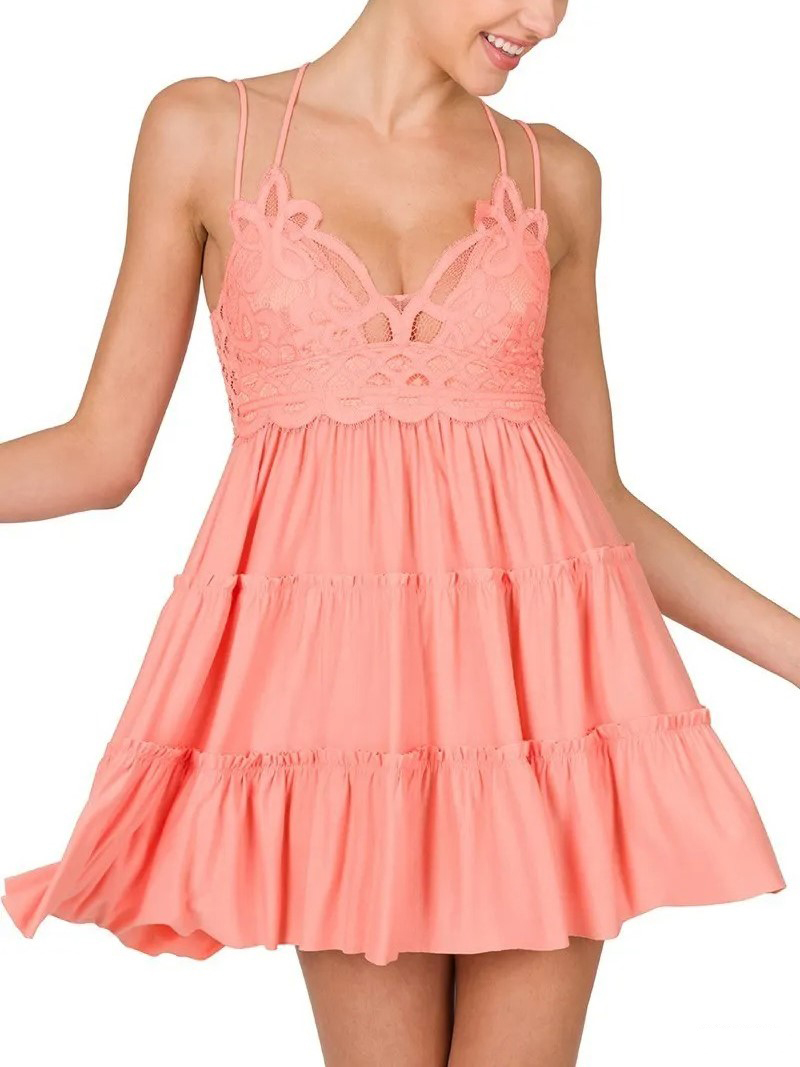 Step into elegance and embrace your feminine charm with our Crochet Lace Dress! Embrace boho vibes with ruffle tiered details and a flattering smocked back for any casual occasion. Perfect for summer looks, pair with denim shorts and sandals.