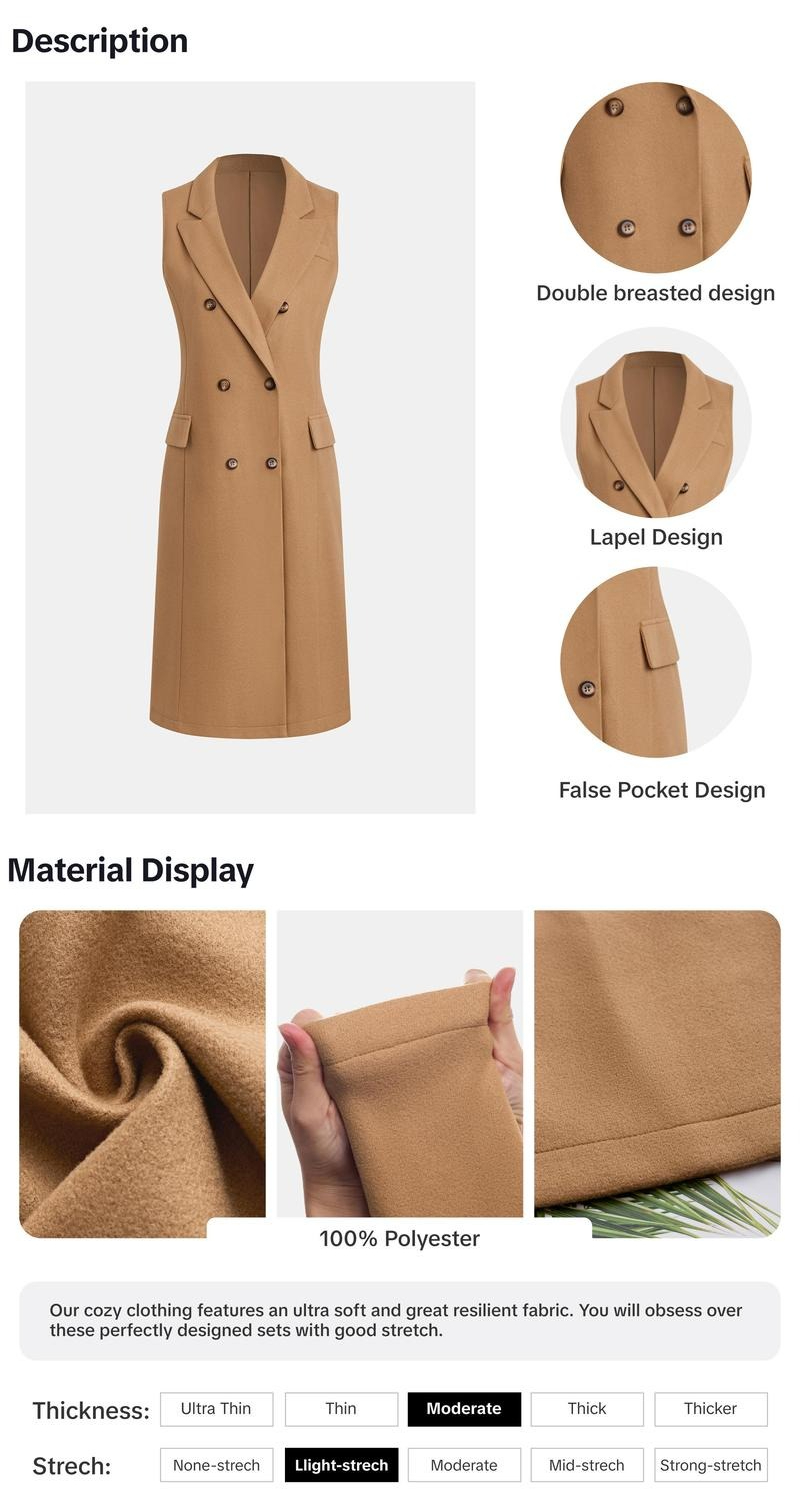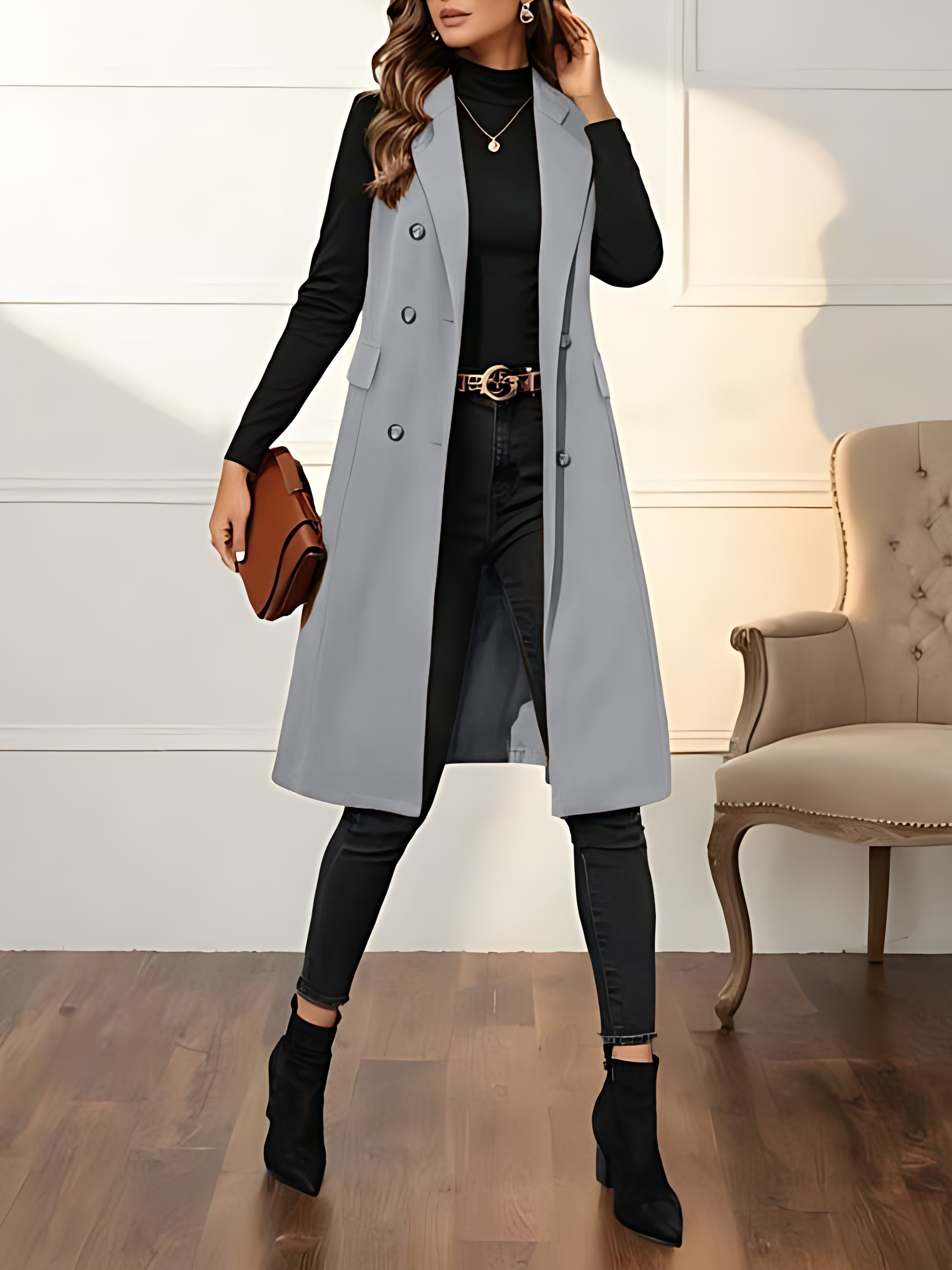 HOT SALE Women's Double Button Lapel Neck Longline Vest Overcoat