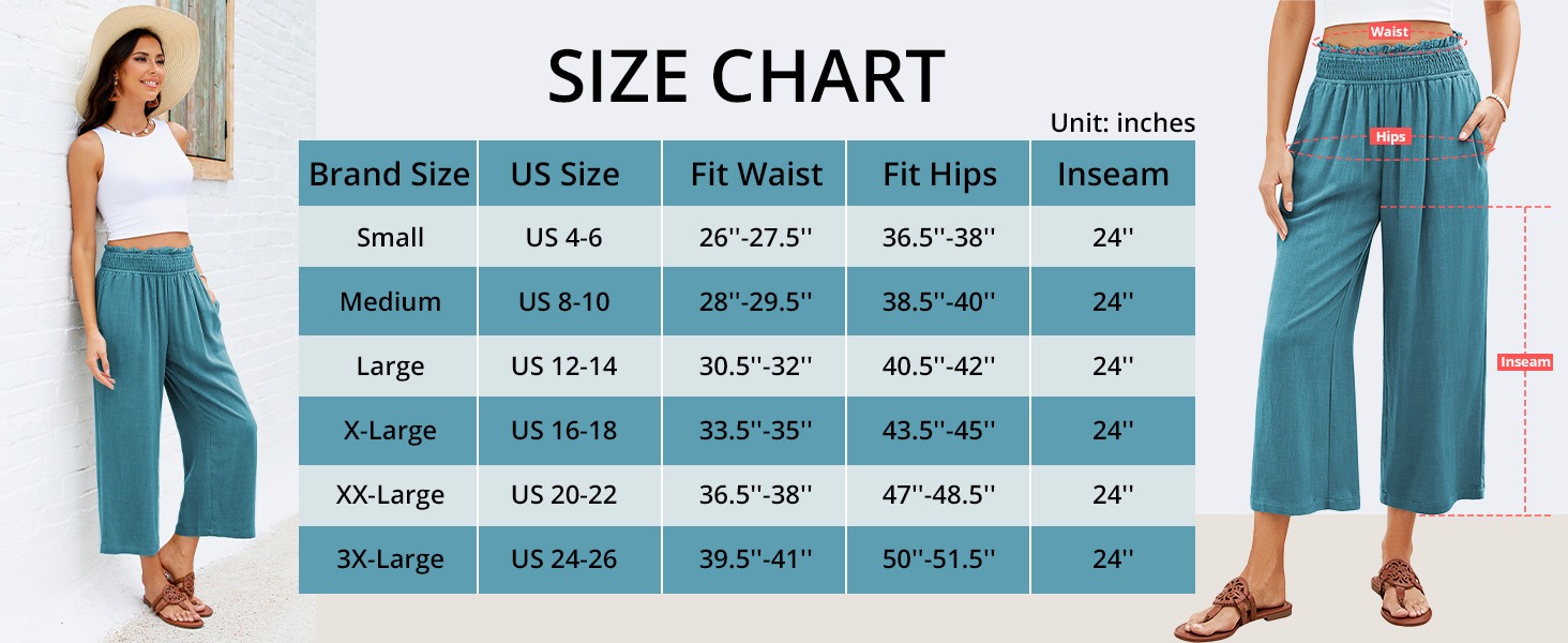 Embrace effortless summer comfort with these breezy capri pants, blending lightweight linen texture and a flattering silhouette for laid-back style. The high-waisted design and wide leg cut lengthen the legs and skim the hips, flattering all body shapes.