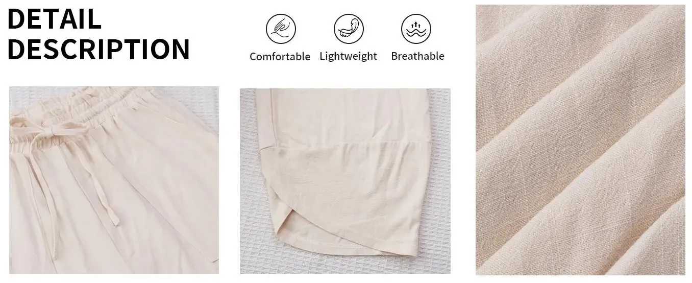 Embrace effortless summer comfort with these lightweight linen capris, designed for laid-back style and practical functionality. The elastic waist and loose fit ensure all-day comfort, while the linen-blend fabric keeps you cool in hot climates.