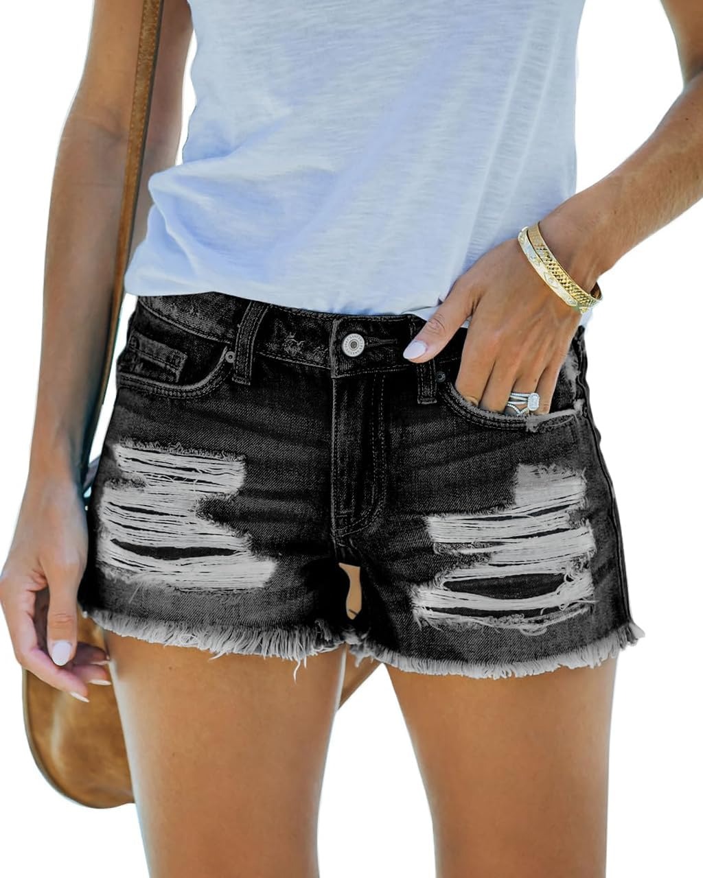 Women's Mid Rise Ripped Stretchy Jean Shorts (BUY 2 FREE SHIPPING)