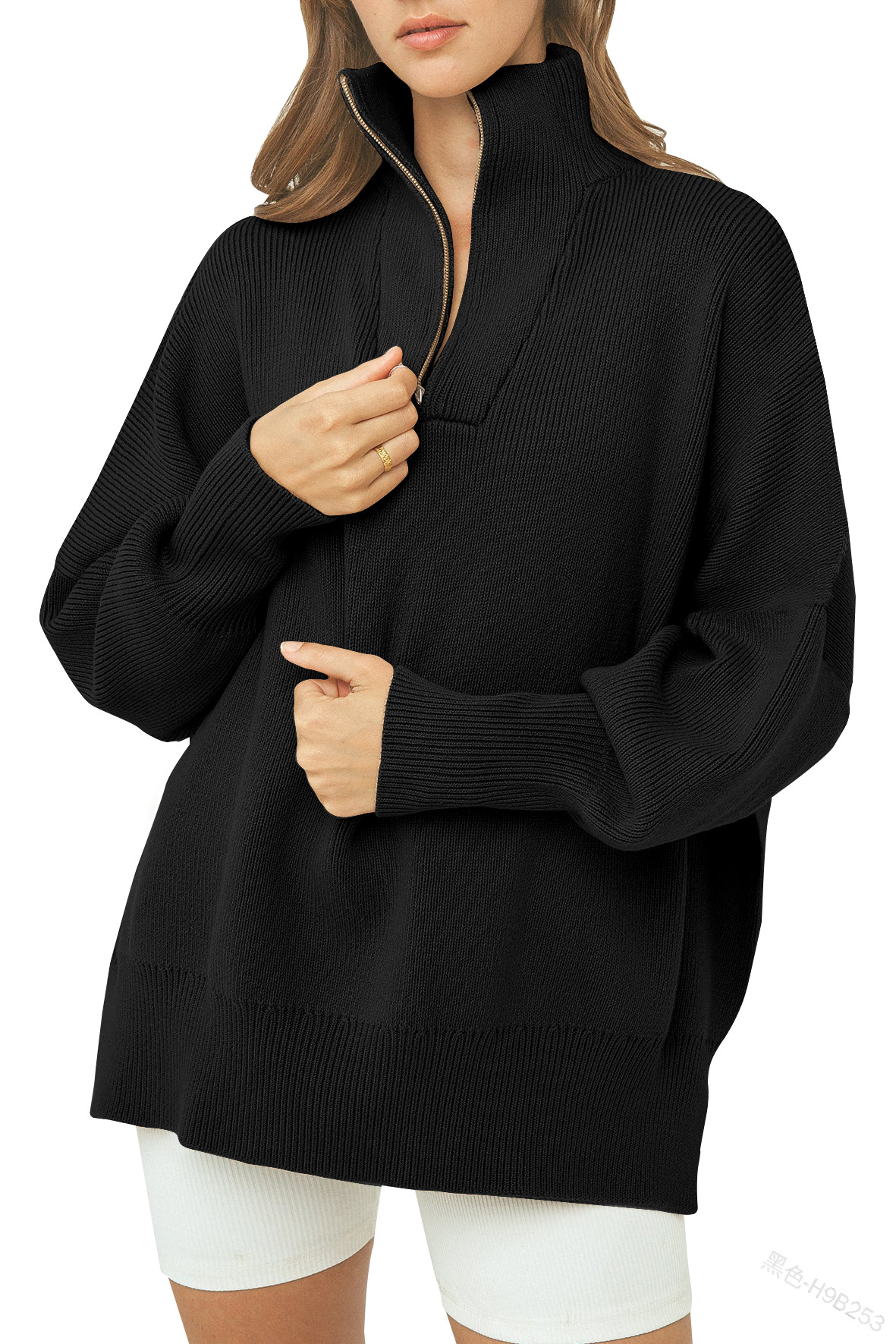 Zip-Up Sweater is cozy and playful. Made with an oversized fit and ribbed fabric, this long-sleeved top has an adjustable zip-up neckline for a cozy feel. Perfect for a casual yet quirky look.