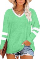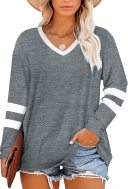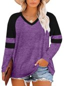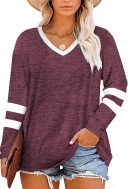 Add a sporty yet stylish vibe to your casual wardrobe with this Women's Casual Striped Color Block Long Sleeve Shirt. The soft, breathable fabric is perfect for layering or wearing on its own, while the color block design with contrasting stripes adds a fun and youthful touch. This shirt is ideal for a laid-back day out, lounging at home, or pairing with jeans for a casual yet chic look.