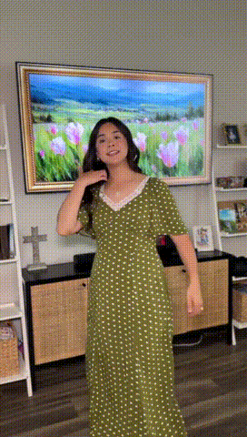 If you love boho chic, this polka dot maxi dress is a must have. It’s graceful and flattering in a body-loving maxi silhouette. The lacy neckline adds extra exquisite detail to this long dress. High waist dress with chic smocked design for flexibility and comfort.