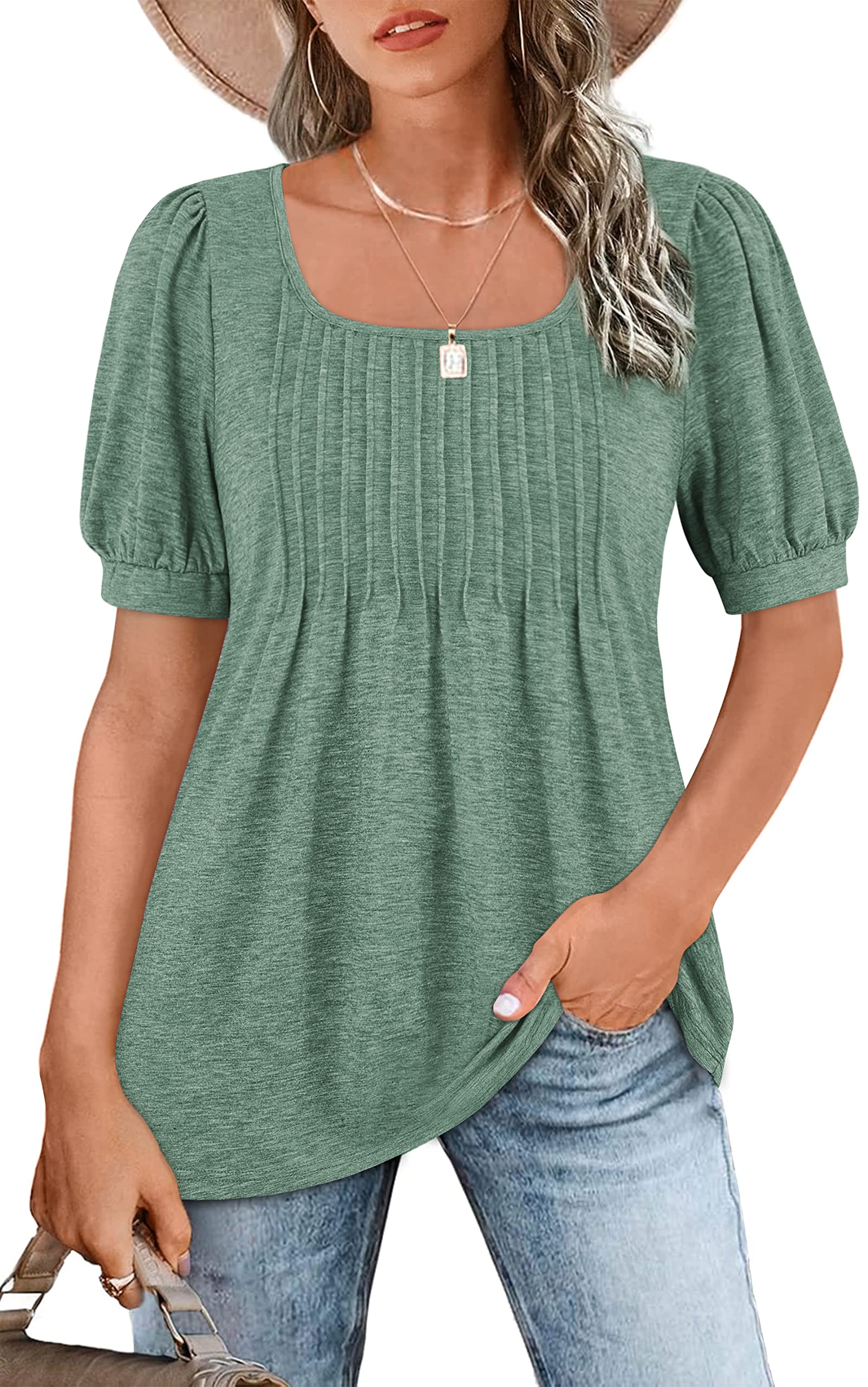 Stay on-trend and confident with our Women's Tunic Tops, design with puff sleeve and babydoll style to conceal the belly area for a flattering fit. The square neck and pleated front detail offer a classic touch, making it ideal for various occasions and easy to pair with your favorite bottoms.