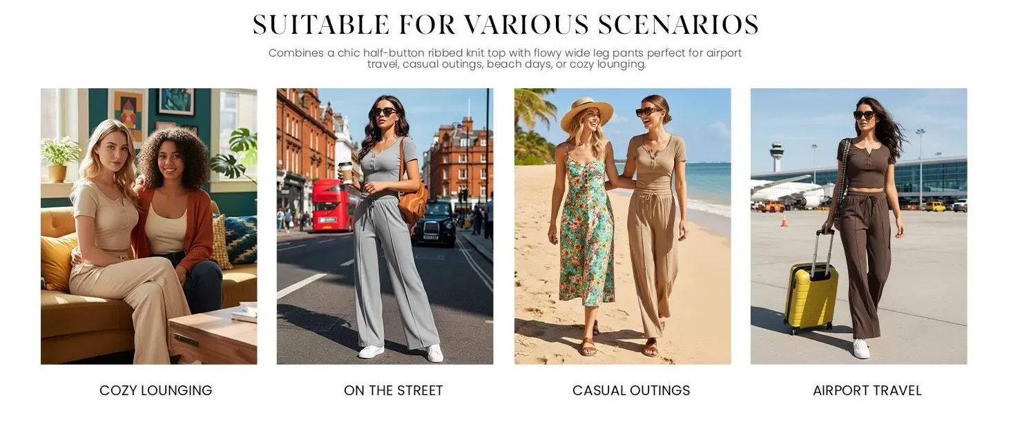 Elevate your casual style with this sleek ribbed knit two-piece set, designed for comfort and modern sophistication. A high-rise elastic waistband with a drawstring ensures a customizable fit, while wide-leg legs create a flowy, elongating silhouette. Vertical seam details add structure, and side pockets offer practical storage.