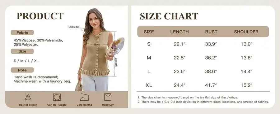 Elevate your wardrobe with this timeless ruffle-trimmed knit vest, blending feminine details and versatile layering for effortless everyday elegance. Crafted from a lightweight, breathable knit material with a smooth, stretchy finish, offering all-day comfort.