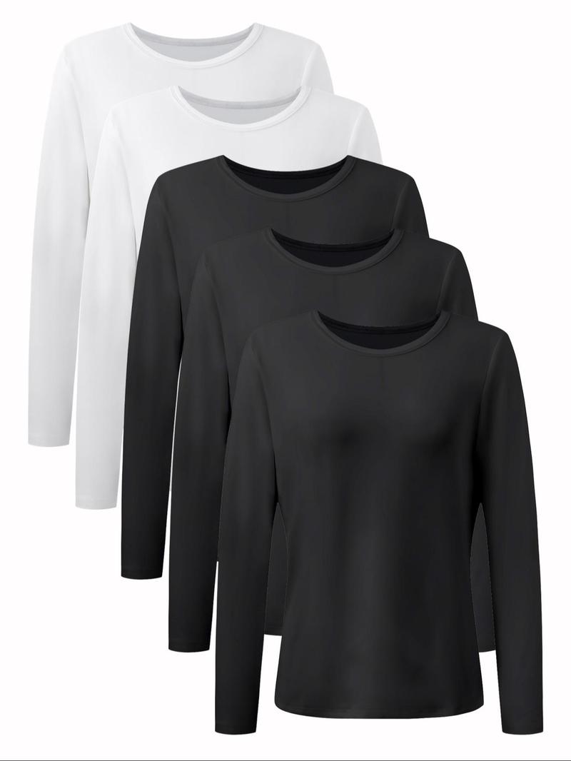 Women's Soild Long Sleeve Cotton Crewneck Basic Tee