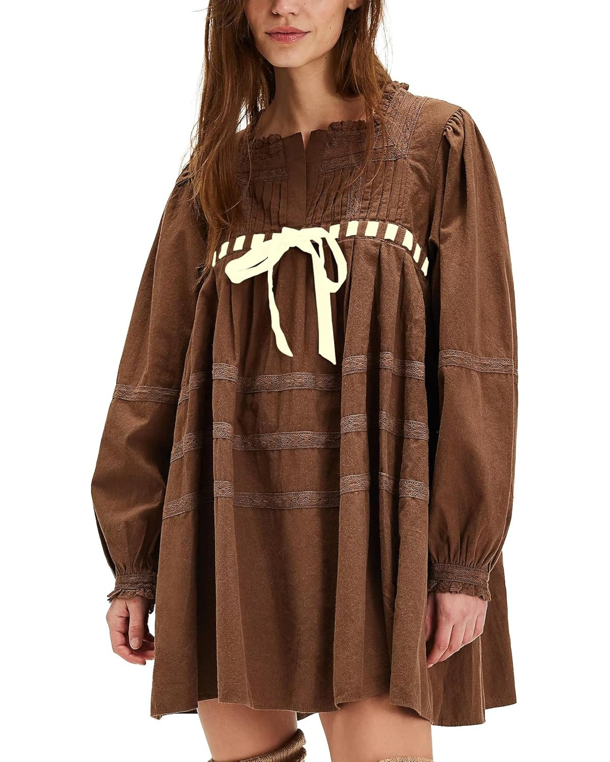 - Lace trim on the neckline and cuffs