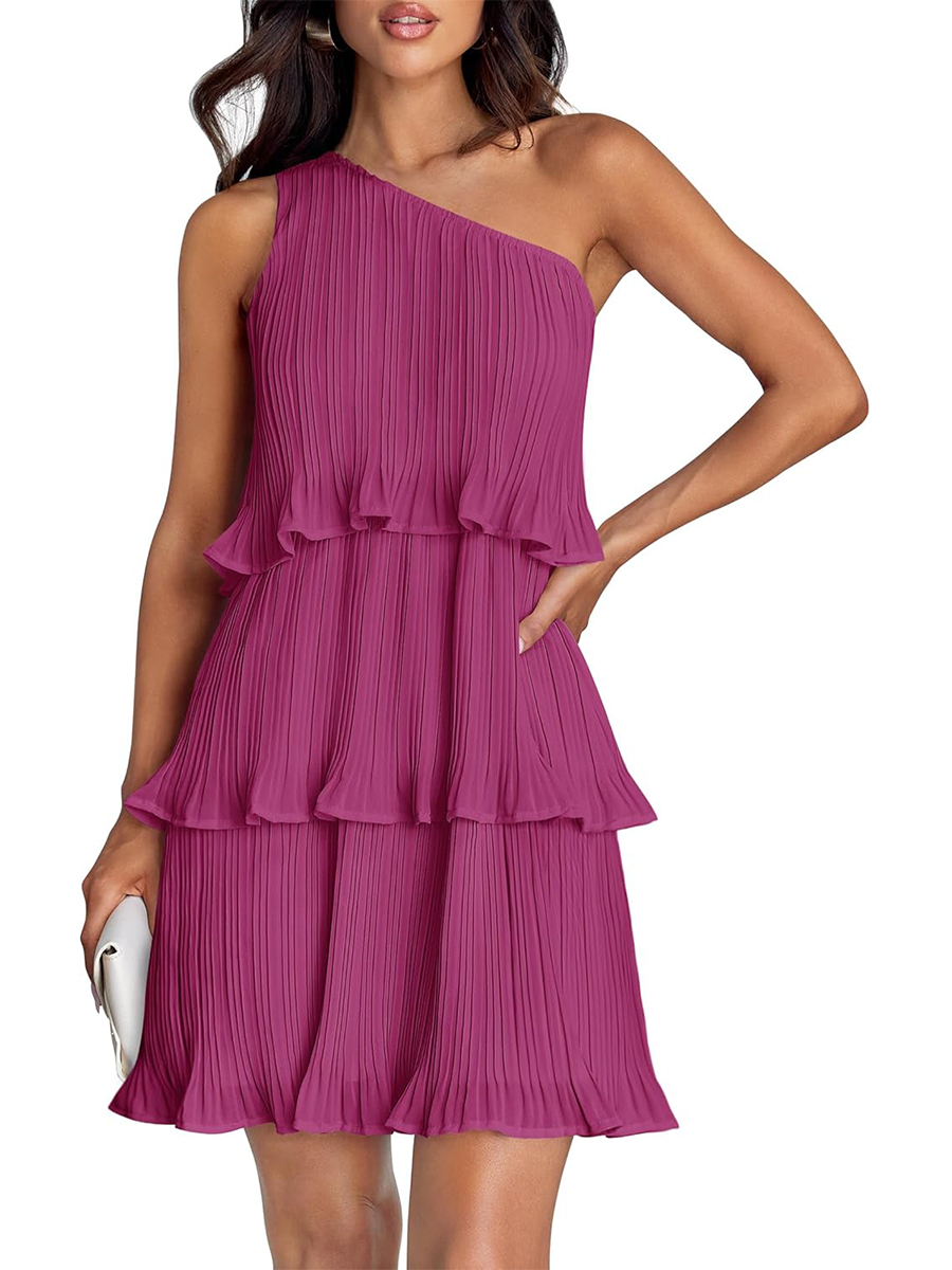 HOT SALE Women's Summer One Shoulder Ruffle Tiered Layered Chiffon Flowy A Line Dress