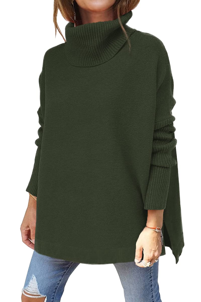 Women's Turtleneck Oversized Spilt Hem Tunic Sweaters