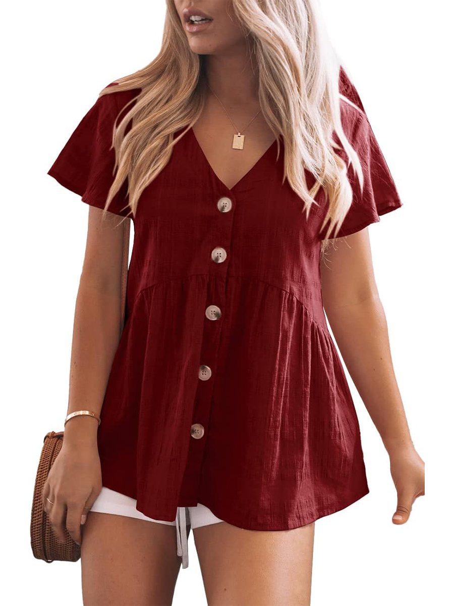 ✨A must have pick for the season - Button Down Peplum Tops! It's a simple piece that's perfect for both formal and casual wear. Featuring V-neck and ruffle details, making it adaptable for women of all ages and body types. It's comfortable to wear, a summer essential for every fashion woman or girl!