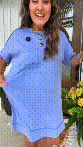 Casual, comfy, and effortlessly cool. This one's for the girls who throw on one piece and still steal the whole vibe. This washed dress features raw edge details, a patch pocket, side slits, making this mini dress a practical and stylish choice for everyday wear.
