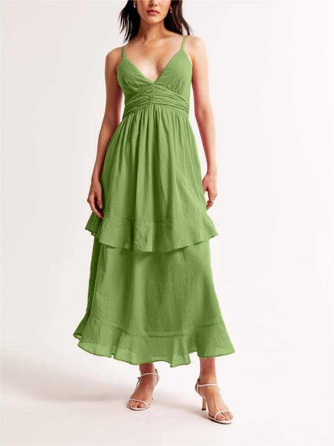 Flattering maxi dress in our lightweight flowy fabric, featuring adjustable tie-back detail with smocking, v-neckline and a tiered flowy skirt.