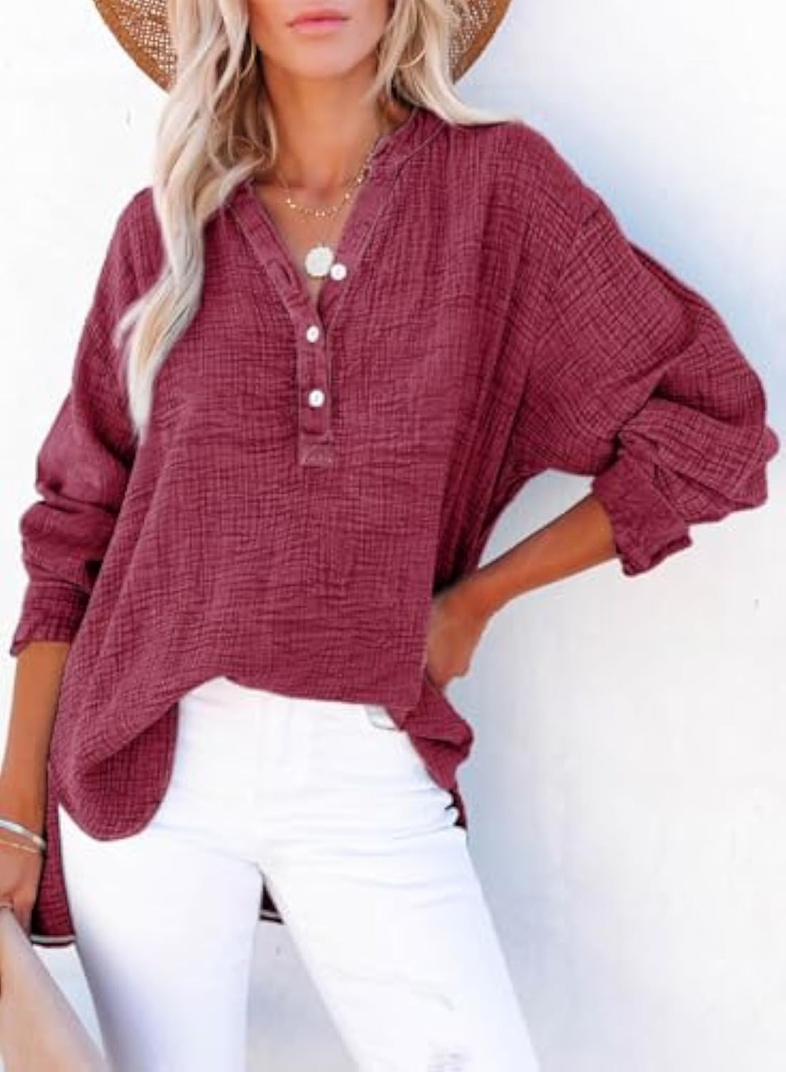 Effortlessly chic and oh-so-comfy, this oversized V-neck shirt is a must-have for your casual wardrobe. Made from soft, breathable fabric with a relaxed fit, it's perfect for layering or wearing solo. The button-up detail adds a touch of charm, making it easy to dress up or down for any occasion.