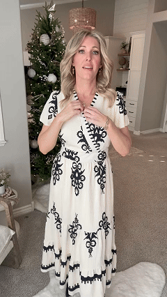 Embrace effortless elegance with this boho-inspired maxi dress! Featuring a flattering V-neck, eye-catching black embroidery, and a tiered flowy silhouette, this dress is perfect for brunch dates, beach strolls, or summer parties.