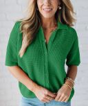 Get ready to elevate your summer wardrobe with our Crissy Crochet Top! This playful, short-sleeved sweater features a unique button-up, collared shirt style with a drop shoulder design and relaxed, boxy fit. Made from soft cotton, it's perfect for a breezy and stylish look. (Pun-fully) crochet your way to effortless fashion with this must-have piece.