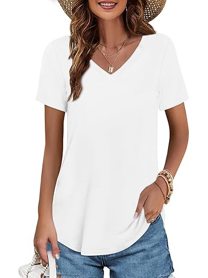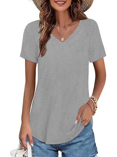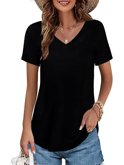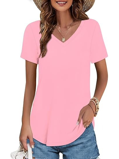 Stay cool and stylish with our Women's V-neck Short Sleeve Tee Top. Made of lightweight material for comfort, this top offers a flattering loose fit. Mix and match with various bottoms for a chic look.