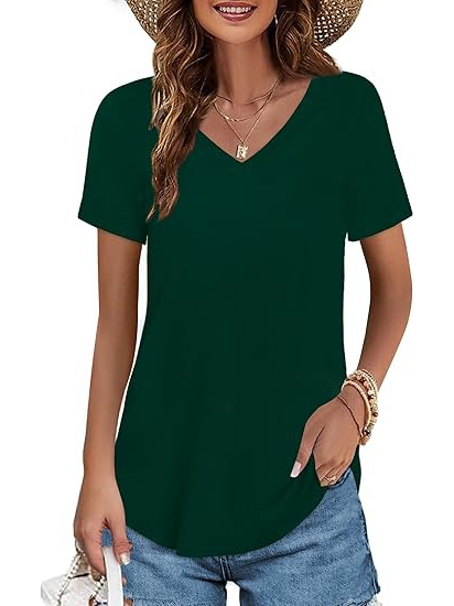 Women's V-neck Short Sleeve Curved Hem Tee Top (Buy 3 Free Shipping)